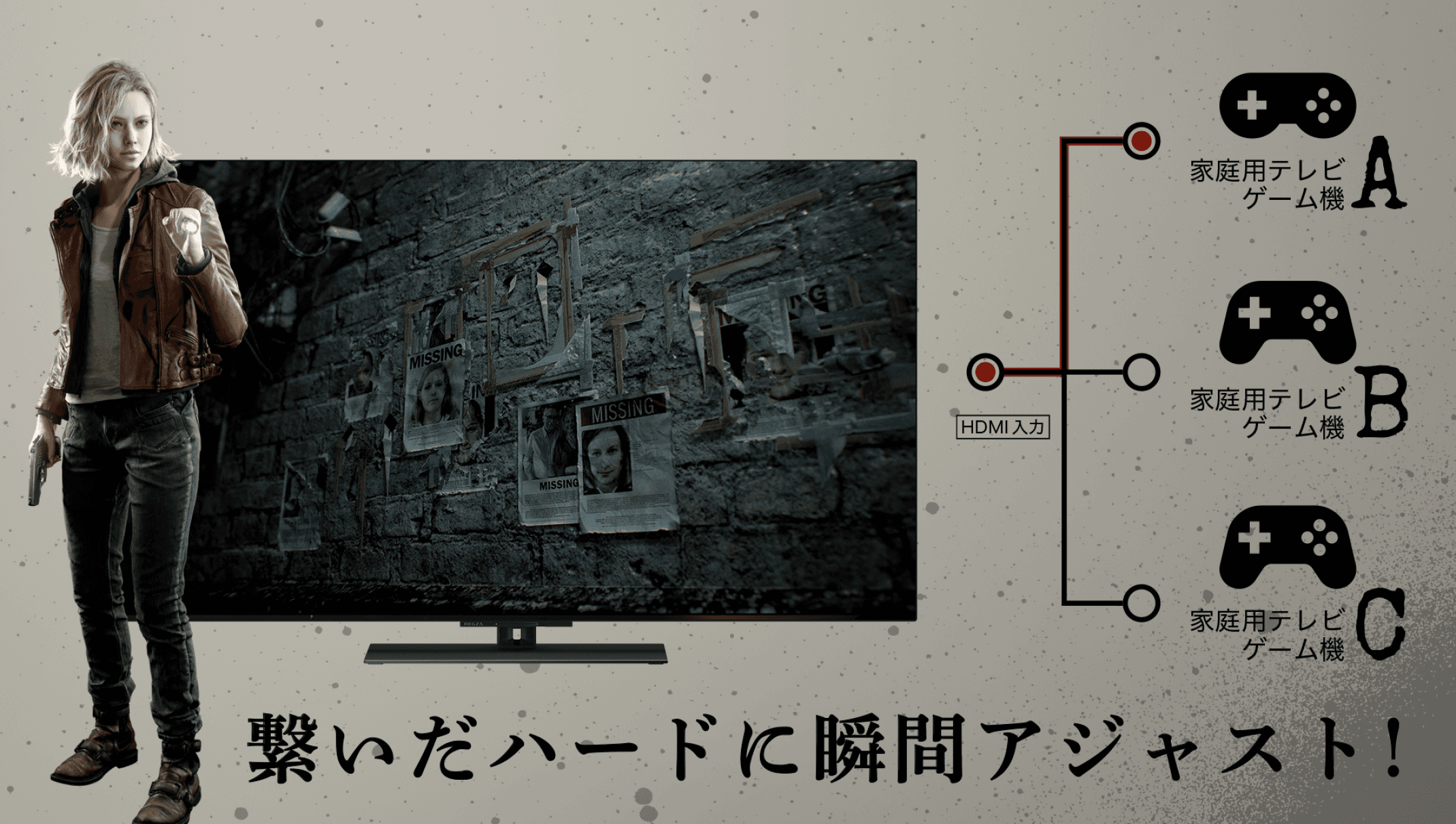 ゲーム機を接続すると、レグザが機種を自動判別。つないだゲーム機に合わせて最適な設定に瞬時に変更。